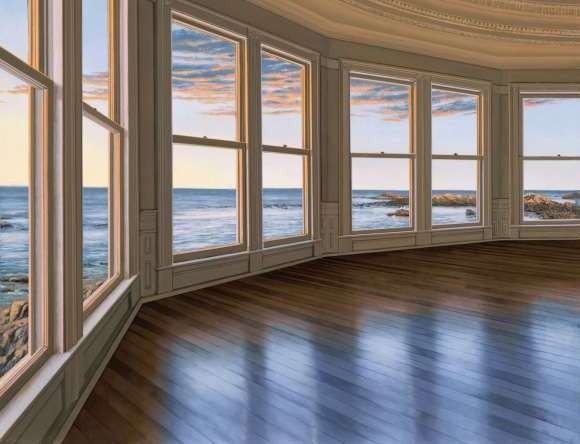 Mais je pourrais commencer en disant qu'elle aurait de grandes baies vitrées donnant sur la mer.