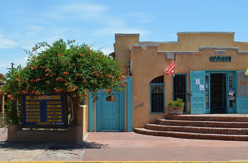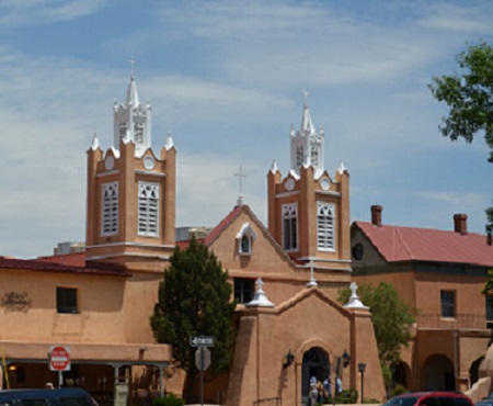 Lors de notre séjour au Nouveau-Mexique nous sommes allés vers le sud, à Albuquerque qui est la plus grande ville de cet état. Rien à voir avec Santa Fé car on se trouve vraiment dans une ville américaine avec ses gratte-ciels et ses grandes bretelles de périphériques. Bref tout ce que je n'aime pas. Mais heureusement il reste la vieille ville "Old town" fondée en 1706 par les espagnols et qui reste le coeur touristique d'Albuquerque. Tout est autour de la Plaza : l'église, les arcades sous lesquelles les indiens vendent les bijoux qu'ils ont faits et les boutiques d'artisanat indien ou mexicain.