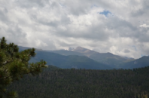 Dans le Parc National des Rocheuses se trouve Longs Peak, un des sommets de plus de 4000m. Il culmine à 4346 mètres.Nous avons eu du mal à voir son sommet souvent caché dans les nuages.